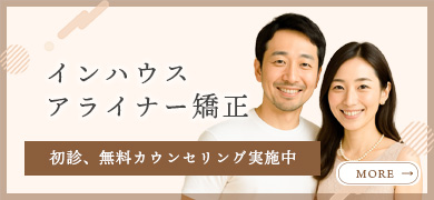 インハウスアライナーとは、院内で診察〜型取り〜マウスピース制作まで院内で通貫して行える矯正治療になります。通常のマウスピース矯正だと1ヶ月以上治療開始まで準備期間を要しますが、院内で完結できるため最短1週間ほどで開始できるほか、マウスピースの微調整も院内で柔軟に対応が可能です。